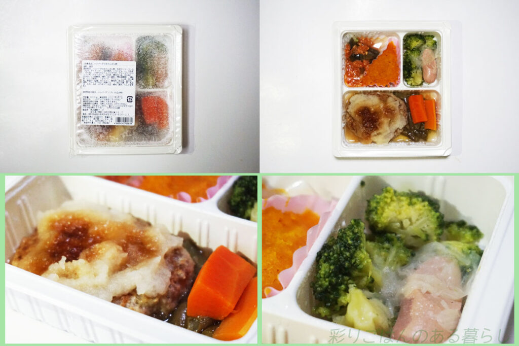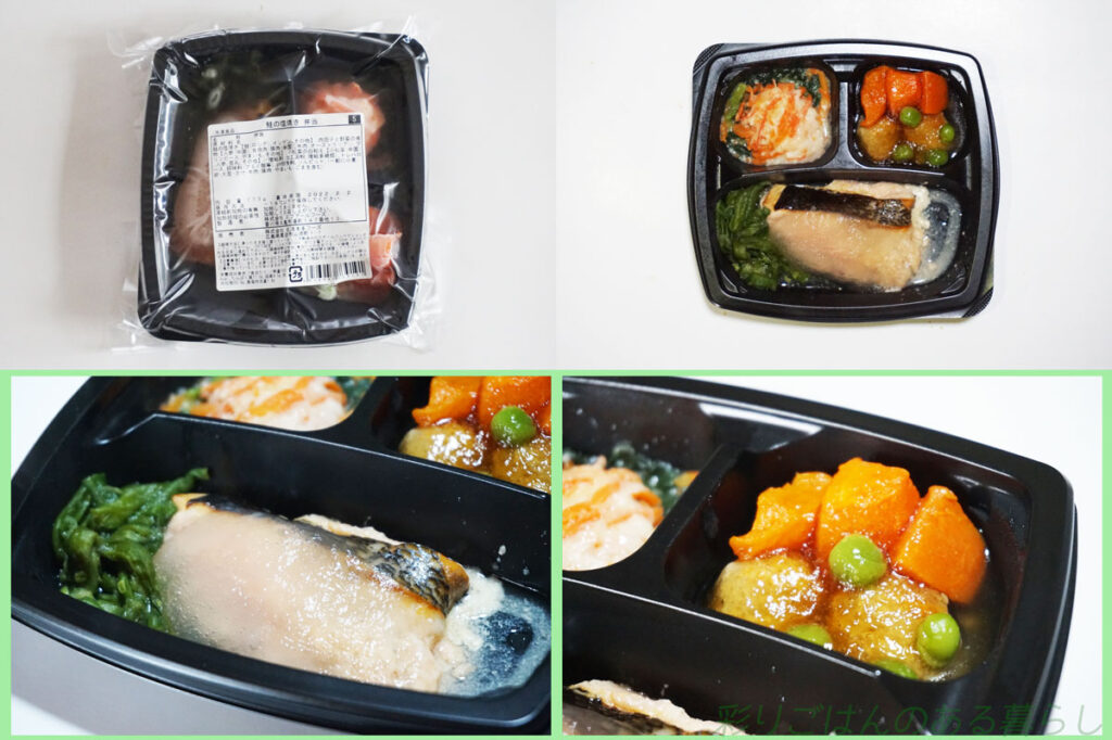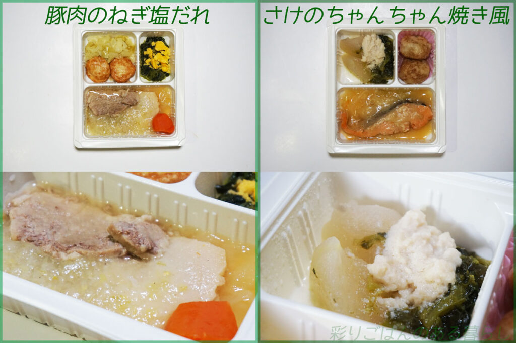 こちらはスギサポdeliのやわらかい食事。左から「豚肉のねぎ塩だれ」「さけのちゃんちゃん焼き風」というメニューセット↓