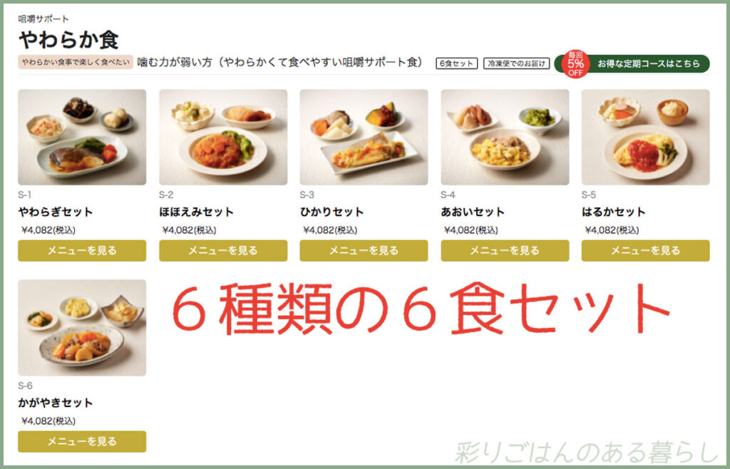 例えば、スギサポdeliのやわらかい食事は6食セットですが、