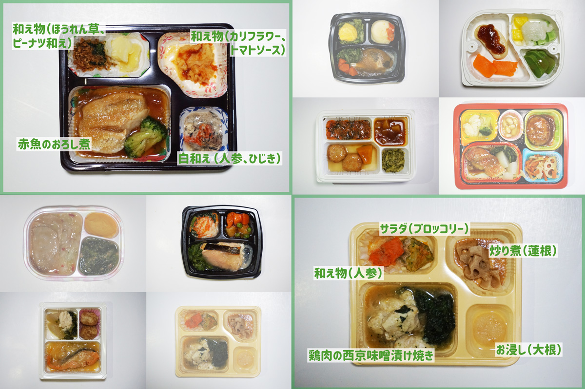 | やわらかダイニング | メディカルフードサービス | 食のそよ風 | ワタミの宅食 | 食宅便 | スギサポdeli | |