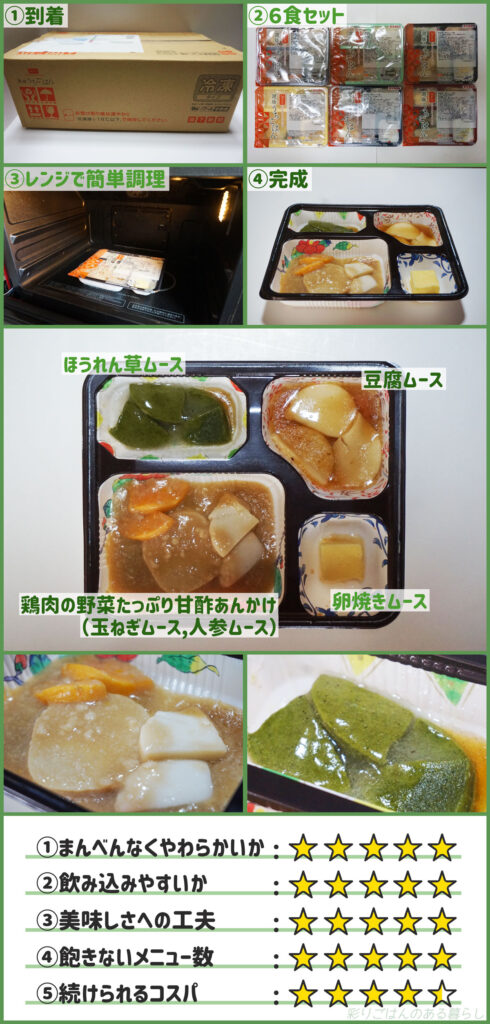 今回見ていった3つの宅配ムース食はどれも質が高い食事でした。